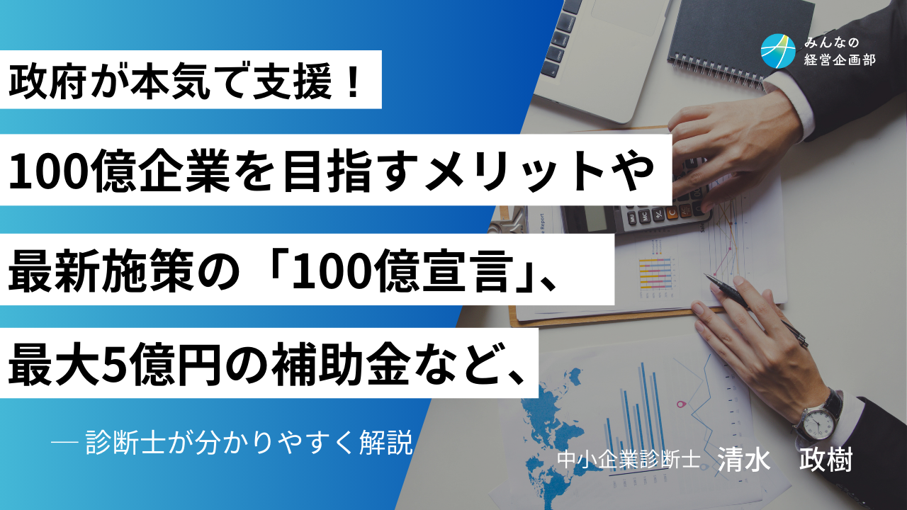 - 政府が本気で支援!100億企業を目指すメリットや最新施策の「100億宣言」、最大5億円の補助金など 診断士が分かりやすく解説
